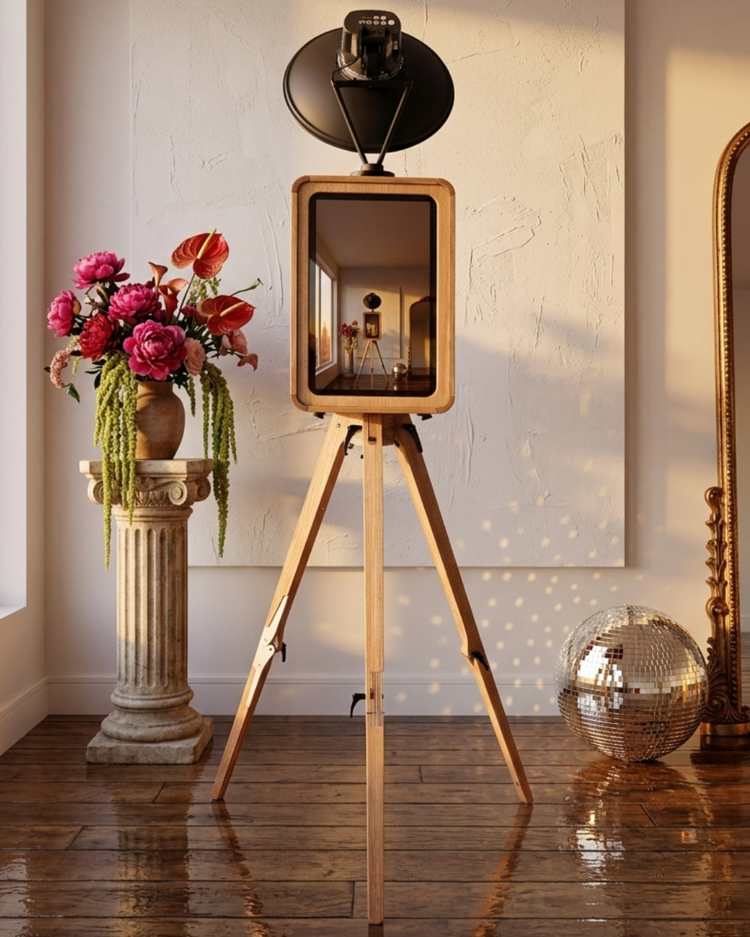 A handcrafted wooden booth and sharing station that turns heads the moment guests walk in. Every screen, every template, every detail is custom built around your vision.